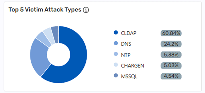 標的への主だった攻撃手法では、CLDAPプロトコルを用いたAmplification攻撃が全体の60.84%を占め、最も多く観測されました。CLDAPは、主にMicrosoft Active Directoryなどのディレクトリへのクエリに使用されるネットワークプロトコルです。CLDAPはUDPを使用するため、リフレクション・アンプリフィケーション攻撃に悪用される可能性があります。攻撃者は、無防備なCLDAPサーバに小さな偽装リクエストを送信し、被害者へのレスポンスを最初のリクエストの最大70倍のサイズで生成します。CLDAPを利用した攻撃は2016年以降報告されており、増加傾向にあります。